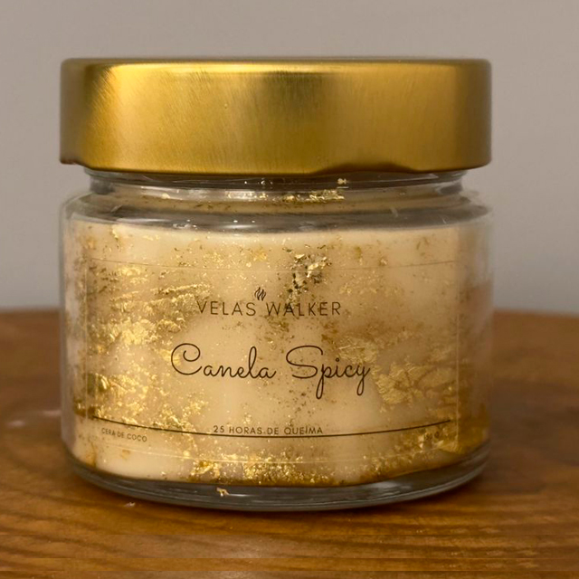 Uma vela que aquece, encanta e impressiona. A fragrância Canela Spicy traz o calor exótico da canela com um toque apimentado, despertando os sentidos e criando uma atmosfera acolhedora e vibrante. Seu diferencial está no acabamento: folhas de ouro/prata/bronze que se espalham delicadamente pela cera, transformando cada vela em uma verdadeira joia artesanal.