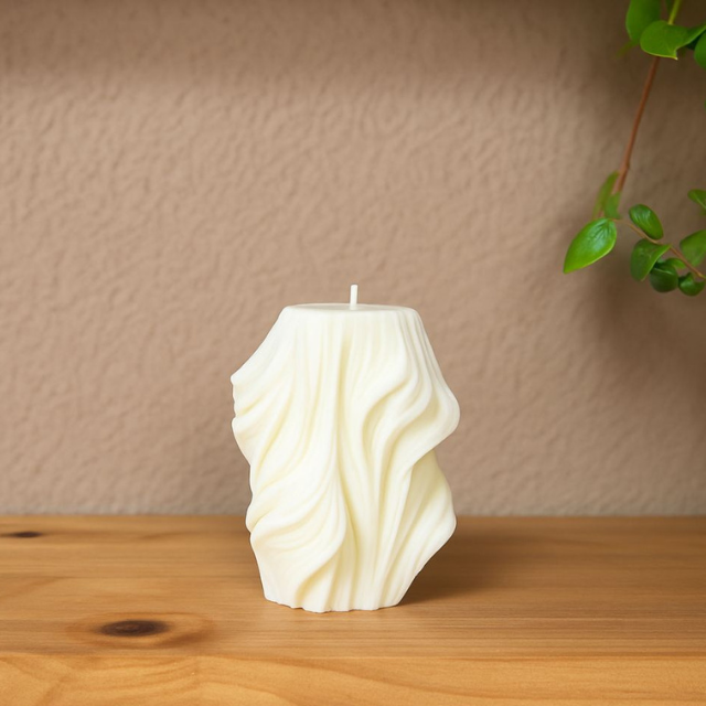 Inspirada no movimento das águas e na fluidez dos tecidos ao vento, a Vela "Ondina" é uma escultura que transmite leveza, graça e elegância. Suas curvas orgânicas esculpidas em cera criam um efeito visual hipnotizante, como ondas suaves moldadas pelo tempo.